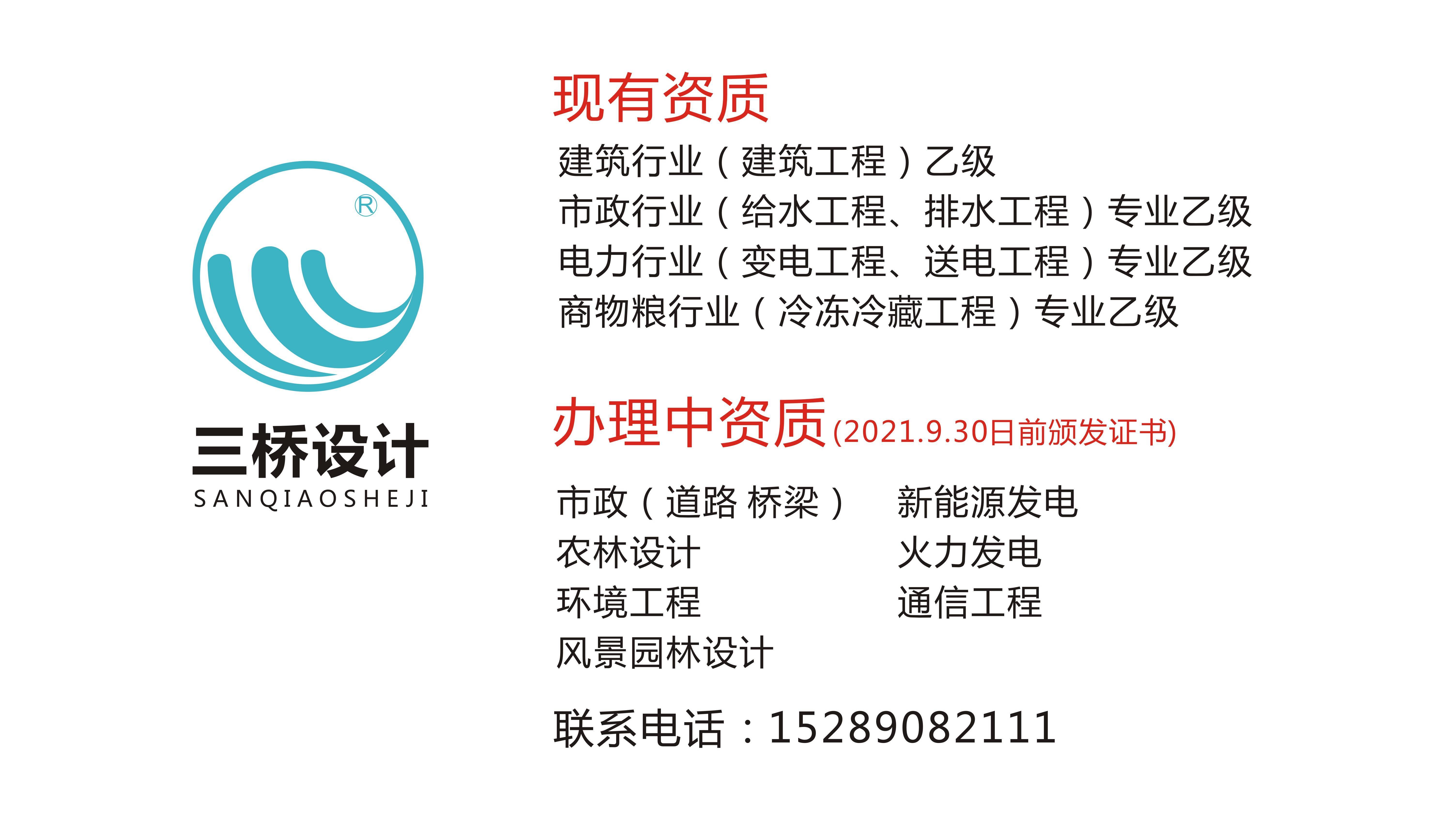 三桥设计有限公司(简称三桥设计)成立于2021年,其主营业务涵盖:建筑工程设计、市政工程设计、城市园林绿化设计、商物粮冷冻冷藏设计,水利工程、环境工程、新能源发电 ,火力发电,通信工程等设计资质及相关项目设计,可以承接全国各地的项目。公司在市政建筑设计、居住建筑设计、园林景观设计、城乡规划设计,特别是在建筑设计,规划设计等方面具有明显的市场竞争优势。